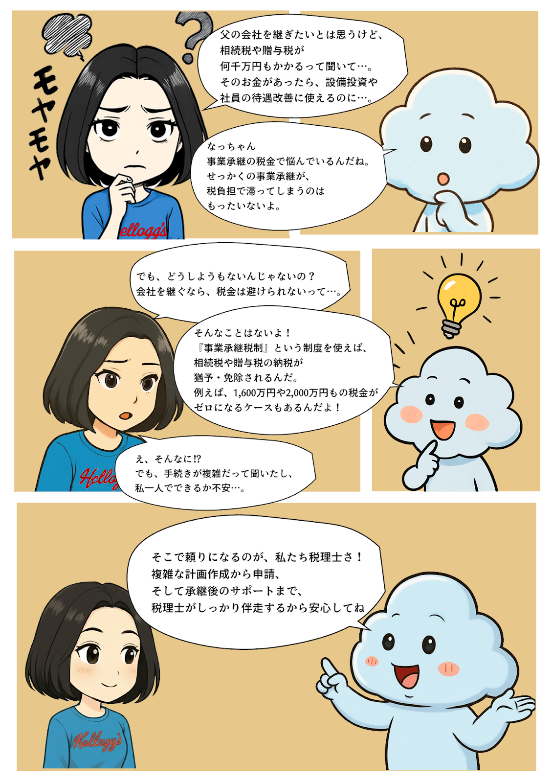 事業を経営されている皆様、あるいは将来事業を引き継ぐことを考えている皆様にとって、「事業承継」は避けて通れない重要なテーマです。しかし、その道のりには様々な課題が立ちはだかります。特に、後継者問題と並んで多くの経営者を悩ませるのが、事業承継に伴う「税金」の壁です。高額な相続税や贈与税が、せっかくの事業承継を妨げ、会社の未来を危うくする現実も少なくありません。マンガの主人公「なっちゃん」が抱えていた「モヤモヤ」は、まさに多くの経営者の皆様が感じている不安そのものなのです。